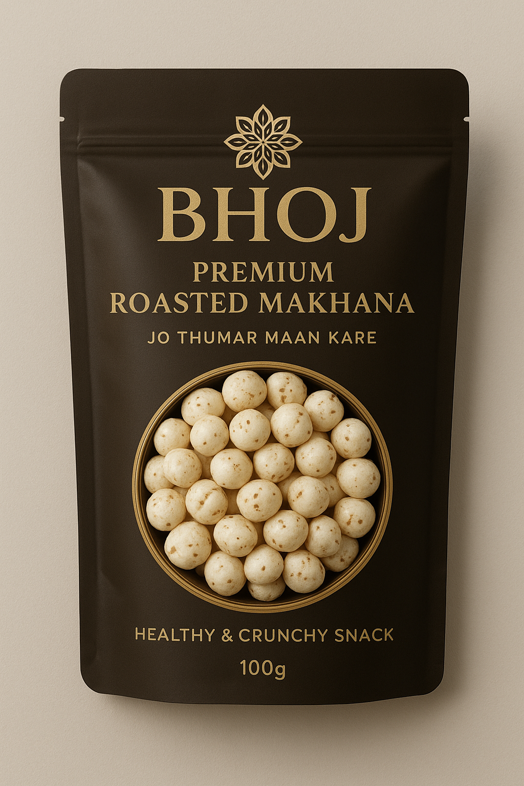 Bhoj Premium Roasted Makhana β a healthy and crunchy snack made from the finest quality fox nuts. Light, protein-rich, and roasted to perfection, itβs the ideal guilt-free treat for any time of the day.